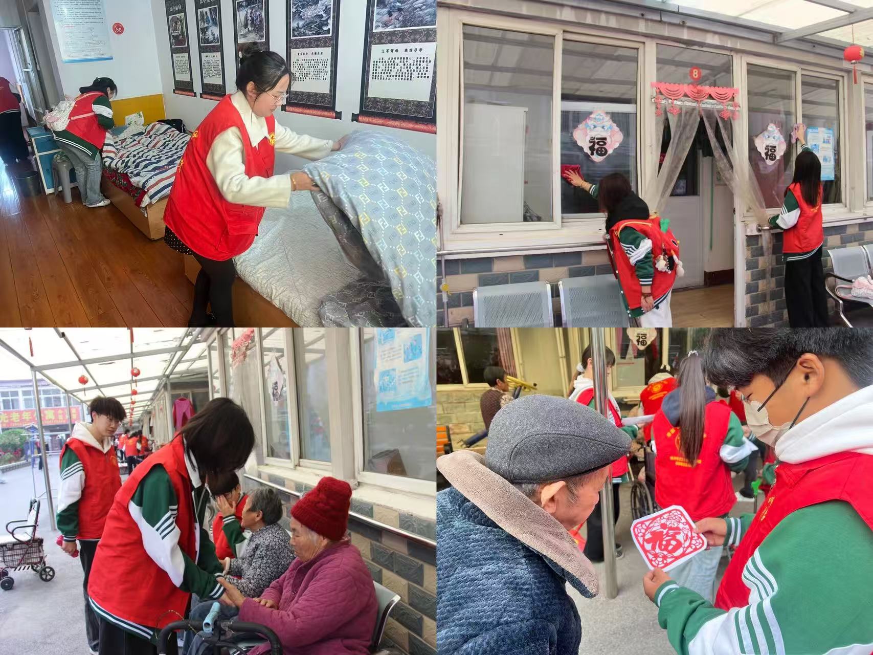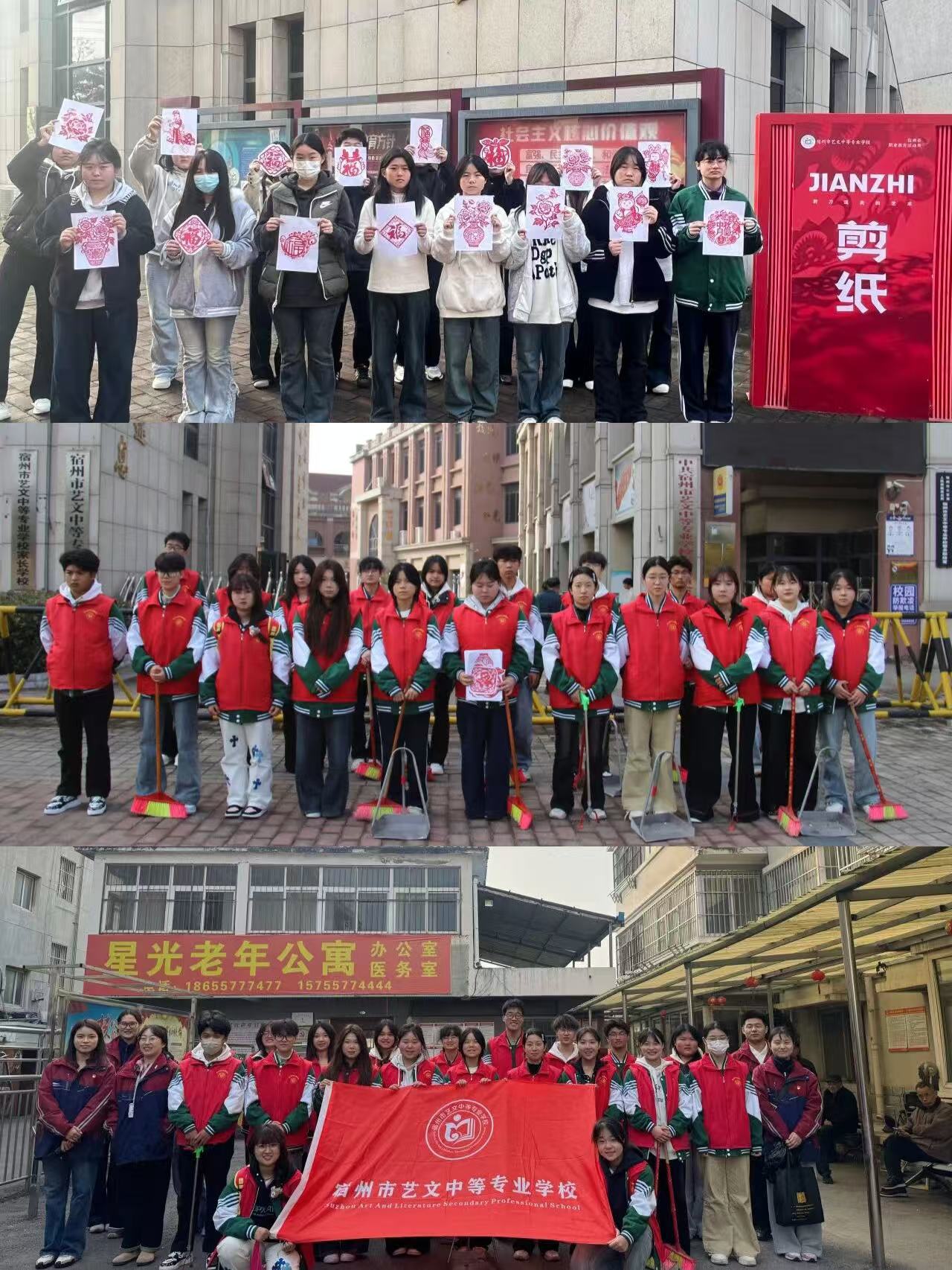 10月27日下午,校团委、学生科、安全科负责人带领20名学生志愿者一同前往星光敬老院开展“情暖重阳,爱满夕阳——艺文学子敬老行”活动。志愿者们身着整齐校服,带着清洁工具、自制贺卡及剪纸作品抵达后,立即分组行动。一组认真清扫园区,为老人营造整洁环境;另一组则陪伴在老人身边,亲切交谈、倾听故事,并帮助整理房间。