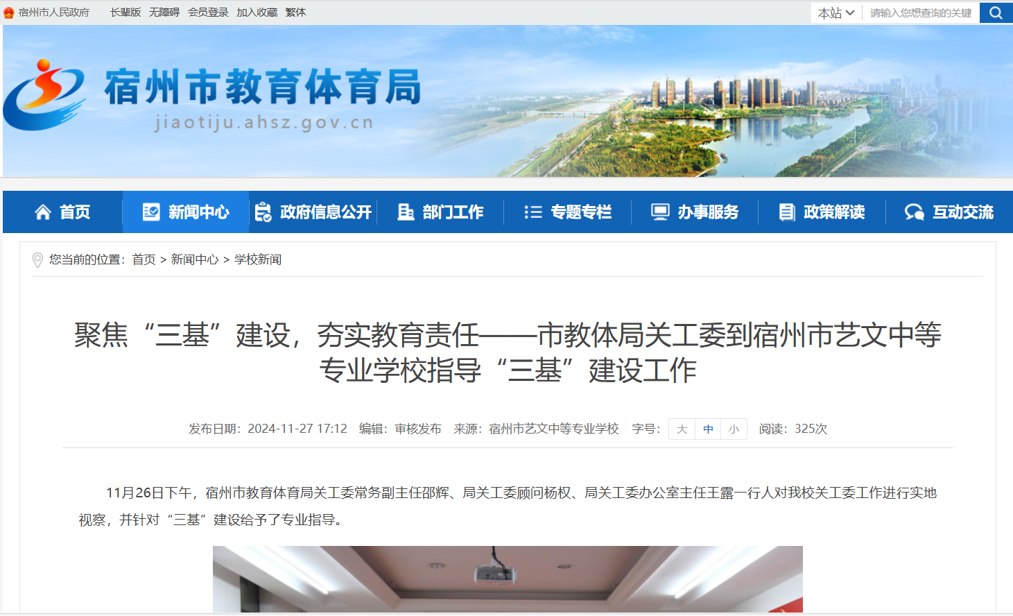 【市教体局】聚焦“三基”建设,夯实教育责任——市教体局关工委到宿州市艺文中等专业学校指导“三基”建设