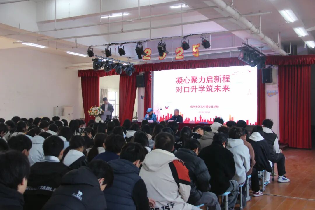 为了指引高考冲刺方向,增强迎考信心,激发拼搏精神,11月5日上午,宿州市艺文中等专业学校在图书馆隆重举行2023级对口升学高考激励动员大会。学校执行校长朱华、教务科科长张国芳、23级年级组长石全文、对口班班主任及全体23级学生参加大会。