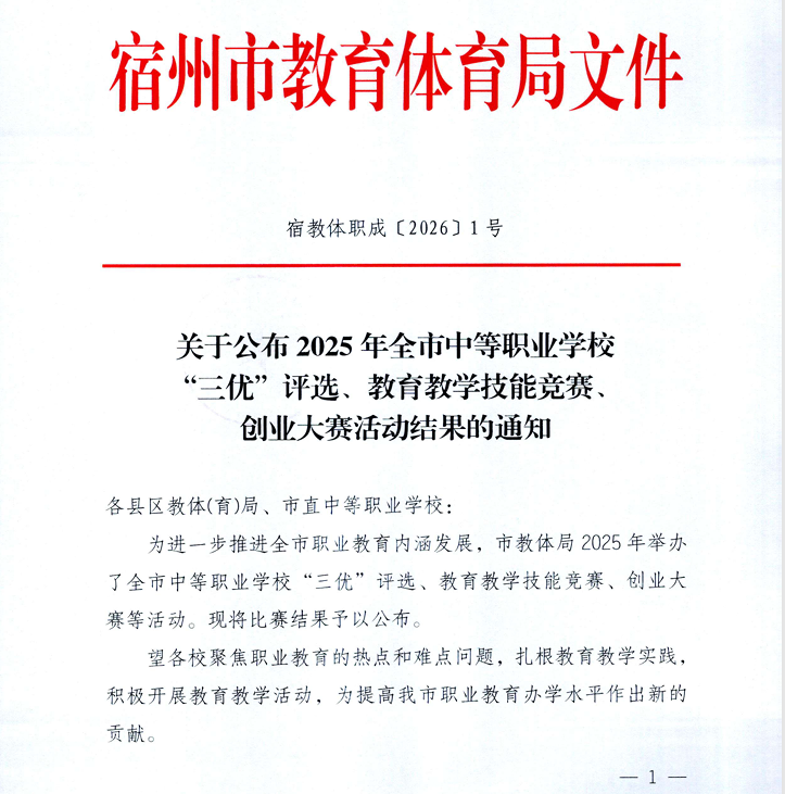 - 上一篇 : 宿州市艺文中等专业学校2025年质量报告